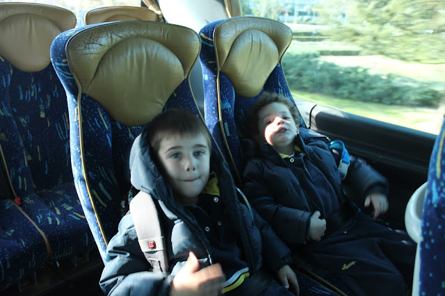 Preparados con nuestras mochila para subir al autocar y volver al cole.